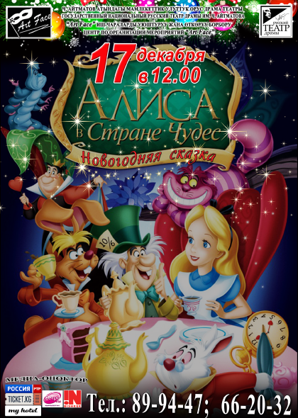 Продюсерский центр «ArtFace» представляет: в субботу 17 декабря в 12.00 на сцене Театра русской драмы состоится детский спектакль «Алиса в Стране чудес».