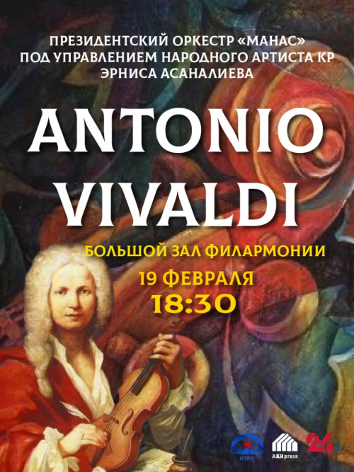 Президентский камерный оркестр «Манас» при Управлении делами Президента КР приглашает гостей на самый долгожданный и неповторимый концерт, насладиться великими произведениями, выдающегося композитора ANTONIO VIVALDI!