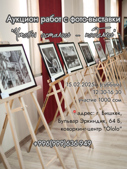Всего 15 лотов. Это фотографии Бишкека и вокруг него, Парижа, Вены, Флоренции. Вы найдете и пейзажи и натюрморты. Фотографии черно-белые.