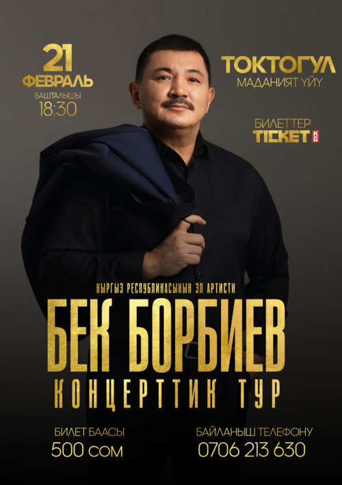 Бек Борбиевдин концерти унутулгус окуяга айланат деп күтүлүүдө, ал күйөрмандарды бириктирип, артисттин көп кырдуу талантын татып көрүүгө уникалдуу мүмкүнчүлүк берет. Бул майрамдын бөлүгү болуу мүмкүнчүлүгүн өткөрүп жибербеңиз!