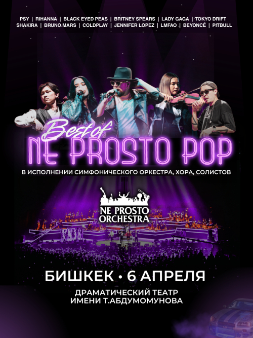 NE PROSTO POP — это самые популярные поп-песни 00-х в живом исполнении симфонического оркестра и хора, более 35 артистов на одной сцене. Это танцевальное диско-пати, c мощной аранжировкой и энергией настоящего шоу.