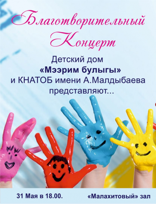 Благотворительный концерт, посвященный Международному Дню защиты детей, состоится 31 мая 2022 года в 18 часов в Малахитовом зале Кыргызского национального академического театра оперы и балета имени А.Малдыбаева!