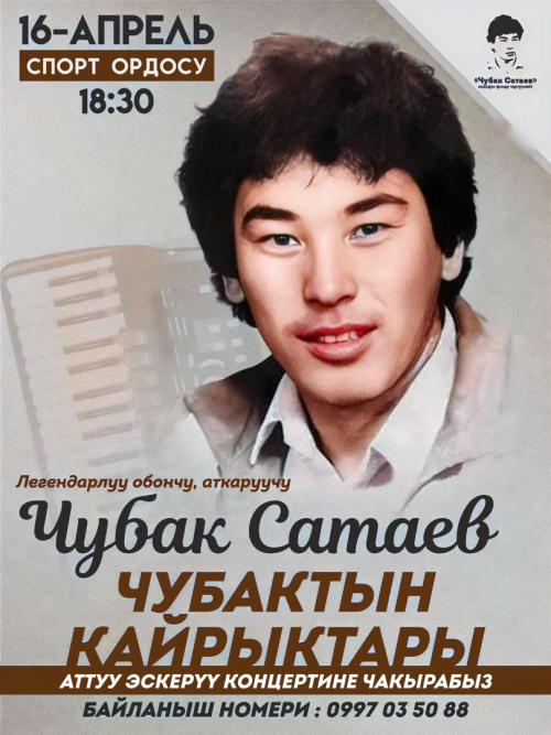 Легендарлуу ырчы жана обончу Чубак Сатаевдин жаркын элесине арналган “Чубактын кайрыктар” аттуу эскерүү концертине чакырабыз!
