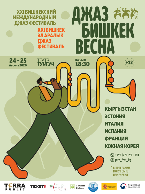 24–25 апреля 2026 года в Бишкеке состоится XXI Международный джаз фестиваль «Джаз Бишкек Весна» — одно из самых ожидаемых культурных событий весны.