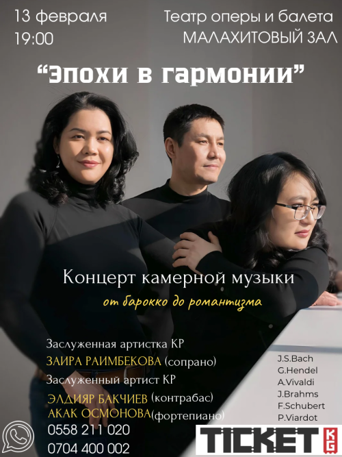 Друзья! Мы рады пригласить Вас 13 февраля 19:00 в малахитовый зал театр оперы и балета им. Абдыласа Малдыбаева.
