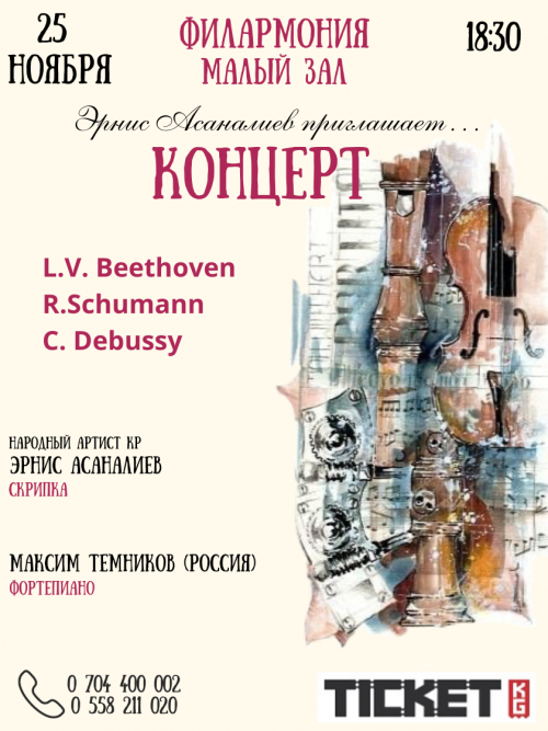 25 ноября 18:30 в малом зале Кыргызской национальной филармонии им.Т. Сатылганова.