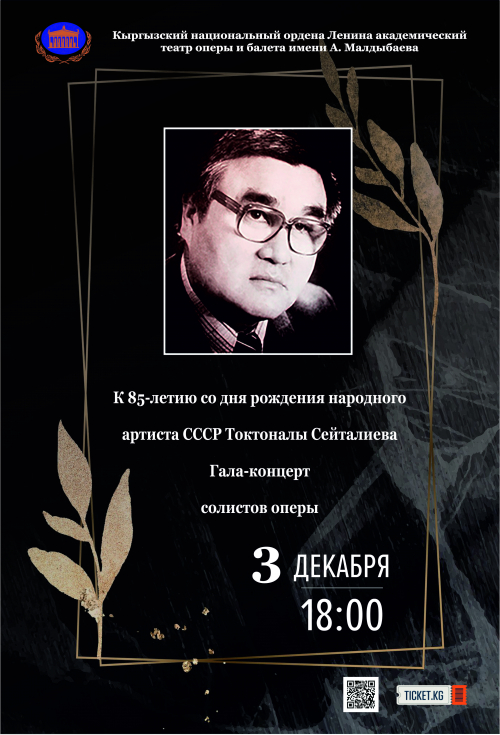 Гала-концерт, посвященный 85-летию со дня рождения выдающегося певца, народного артиста СССР, лауреата Международных конкурсов и премий Токтоналы Сейталиева. В память о выдающемся Мастере солисты оперы исполнят произведения мировой оперной классики.