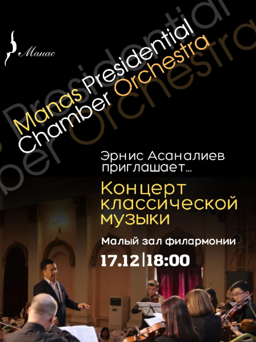 В предверии Нового года, рады сообщить, что Президентский камерный оркестр «Манас» при Управлении делами Президента КР, под управлением Народного артиста КР Эрниса Асаналиева, готовит