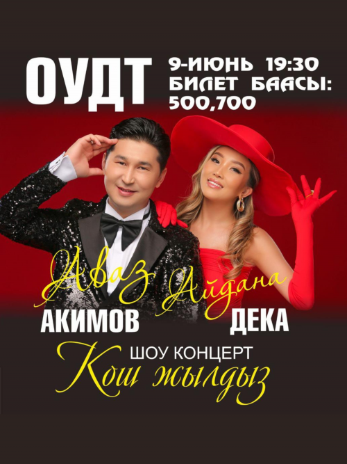 Кыргыз сахнасынын жылдыздуу түгөйлөрү Аваз Акимов менен Айдана Дека "Кош жылдыз" аттуу дуэт шоу концертин тартуулайт!