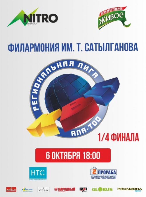 06 октября в Национальной филармонии им. Т.Сатылганова состоиться 1/4 финала Лиги КВН Ала-Тоо. Играют столичные команды Казахстана и Кыргызстана. Не пропустите самую ожидаемую игру сезона!