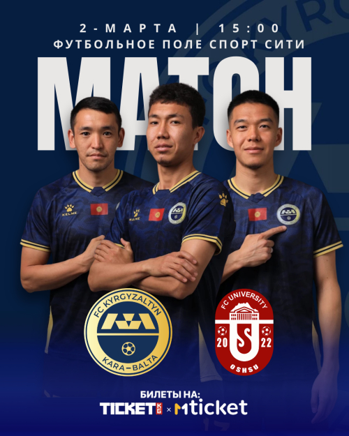 2 марта в 15:00 на футбольном поле Спорт Сити состоится матч первого тура Жогорку лиги Кыргызстана.