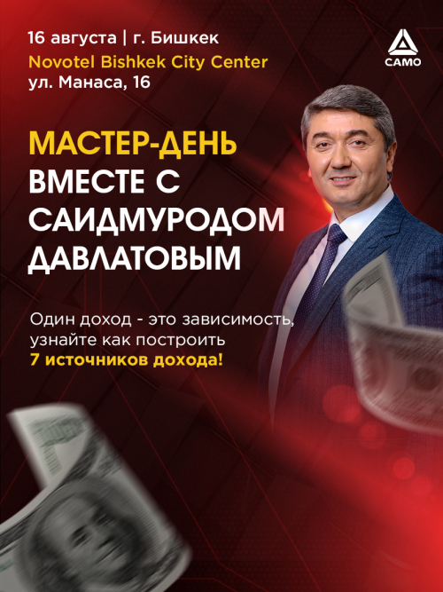 Живой мастер-день от одного из самых влиятельных бизнес-наставников СНГ — Саидмурода Давлатова. За один день вы получите инструменты, которые помогут пересобрать мышление, финансы и цели.