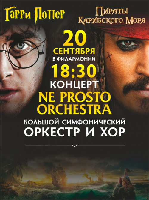 Нашумевший оркестр в новом сезоне представляет: огромный экран и звучание полюбившихся саундтреков из серии состоящий из восьми фильмов основанных на вселенной «Гарри Поттера» английской писательницы Дж. К. Роулинг. А также приключенческих фильмов о «Пиратах Карибского моря» .