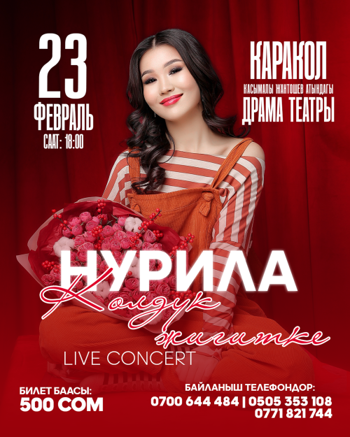 23-февраль К. Жантошев атындагы драм театр 18:00 0700644484 Кирүү билетинин баасы (стоимость входного билета): 500 сом