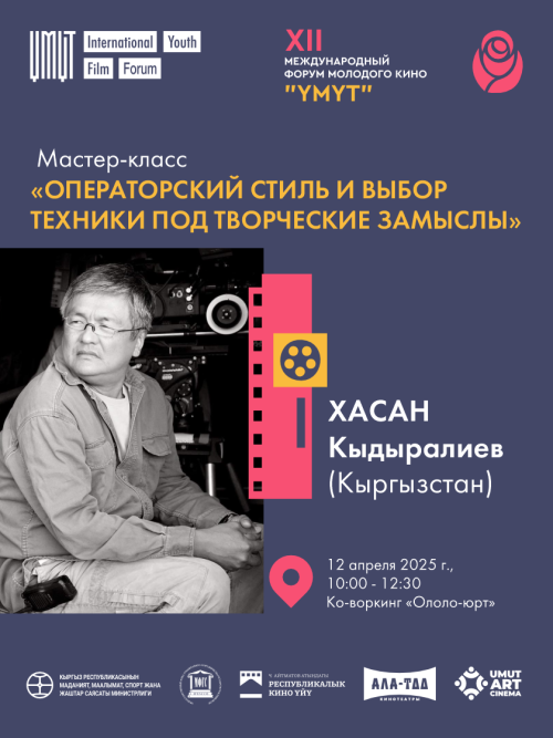 12 апреля (суббота) с 10:00 до 12:30 в коворкинг-центре «Ололо-Юрт» (ул. Кулатова, 61) состоится открытый мастер-класс от выдающегося оператора Хасана Кыдыралиева.