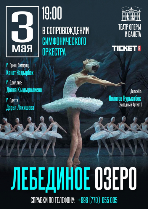 Представляем вашему вниманию шедевр, жемчужину мировой классики - Лебединое озеро П.И.Чайковского. Сказку рыцарской эпохи, великую историю любви, волшебства и коварства увидите с участием артистов балета в сопровождении симфонического оркестра Кыргызского Национального Академического театра оперы и балета им.А.Малдыбаева.