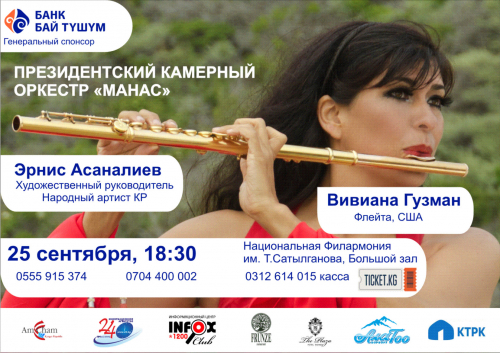Сопровождает волшебную флейту Президентский камерный оркестр “Манас” – один из лучших оркестров в Кыргызстане, существует более 19 лет под управлением Народного артиста Кыргызской Республики, лауреата международного конкурса, доцента Кыргызской Национальной Консерватории Эрниса Асаналиева. В числе артистов оркестра - заслуженные артисты Кыргызской Республики, лауреаты республиканских и международных конкурсов, выпускники Кыргызской национальной консерватории им. К. Молдобасанова.
