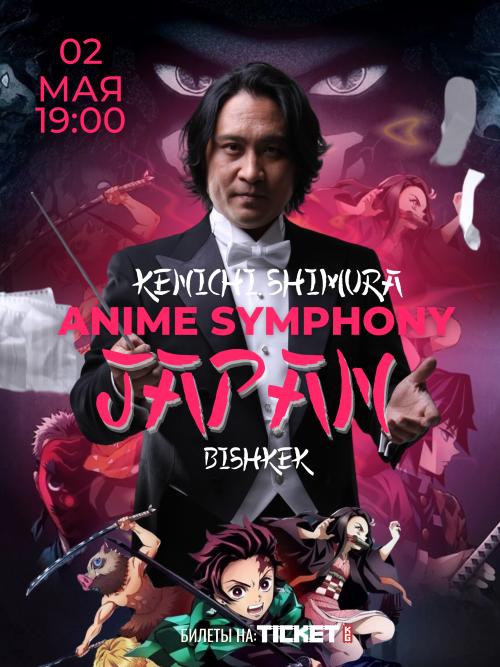 2 мая в 19:00 в Кыргызской национальной Филармонии пройдет большой концерт ANIME SYMPHONY JAPAN. Легендарного японского музыканта и потрясающего дирижера из Японии — Кеничи Симура. Концерт, который нельзя пропустить!