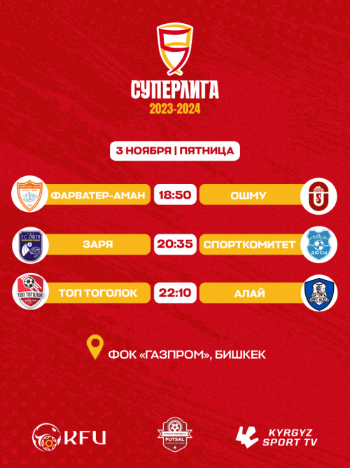 Матчи второго тура чемпионата Кыргызской Республики по футзалу. Вас ждут целых три увлекательных матча!