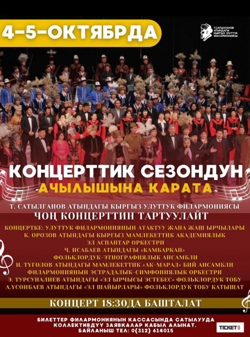 Билеттер филармониянын кассасында сатылууда жана @ticket.kg