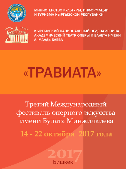 18 октября в 18.30 часов в Кыргызском театре оперы и балета имени А.Малдыбаева состоится опера Джузеппе Верди «Травиата» с участием ведущей солистки Областного театра оперы и балета города Шымкент, деятеля Культуры Республики Казахстан Уралхан Сейлбековой (Виолетта) и ведущего солиста театра «Астана Опера», заслуженного деятеля Республики Казахстан, лауреат Международных конкурсов и фестивалей Жана Тапина (Альфред).