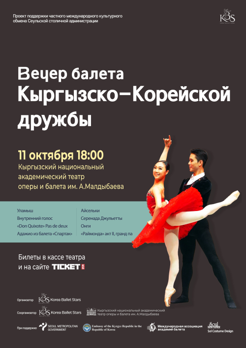 Вечер балета Кыргызско-Корейской дружбы состоится 11 октября в 18.00 в Кыргызском национальном академическом театре оперы и балета имени А.Малдыбаева.