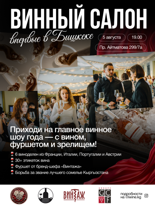 Гости могут познакомиться с широчайшим ассортиментом вин, насладиться фуршетом от бренд-шефа «Винтажа» и наблюдать за оживленной борьбой в финале конкурса за звание лучшего сомелье Кыргызстана!