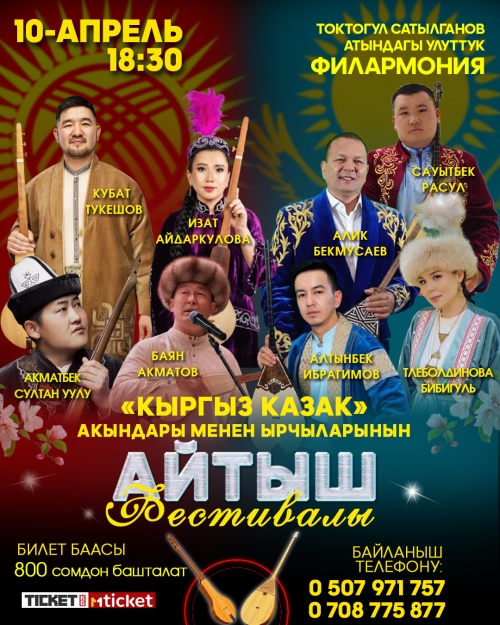 Кыргыз эстрада ишмерлер союзу жана Музыка каналы менен жаны долбоору. Токтогул Сатылганов атыгдагы Кыргыз улуттук Филармониясында КЫРГЫЗ-КАЗАК АКЫНДАРЫ МЕНЕН ЫРЧЫЛАРДЫН АЙТЫШ ФЕСТИВАЛЫ 10-АПРЕЛЬ 18:30 🕡 Ырчылар: Роза Аманова Токтобек Асаналиев Гулзат Байзаковалар